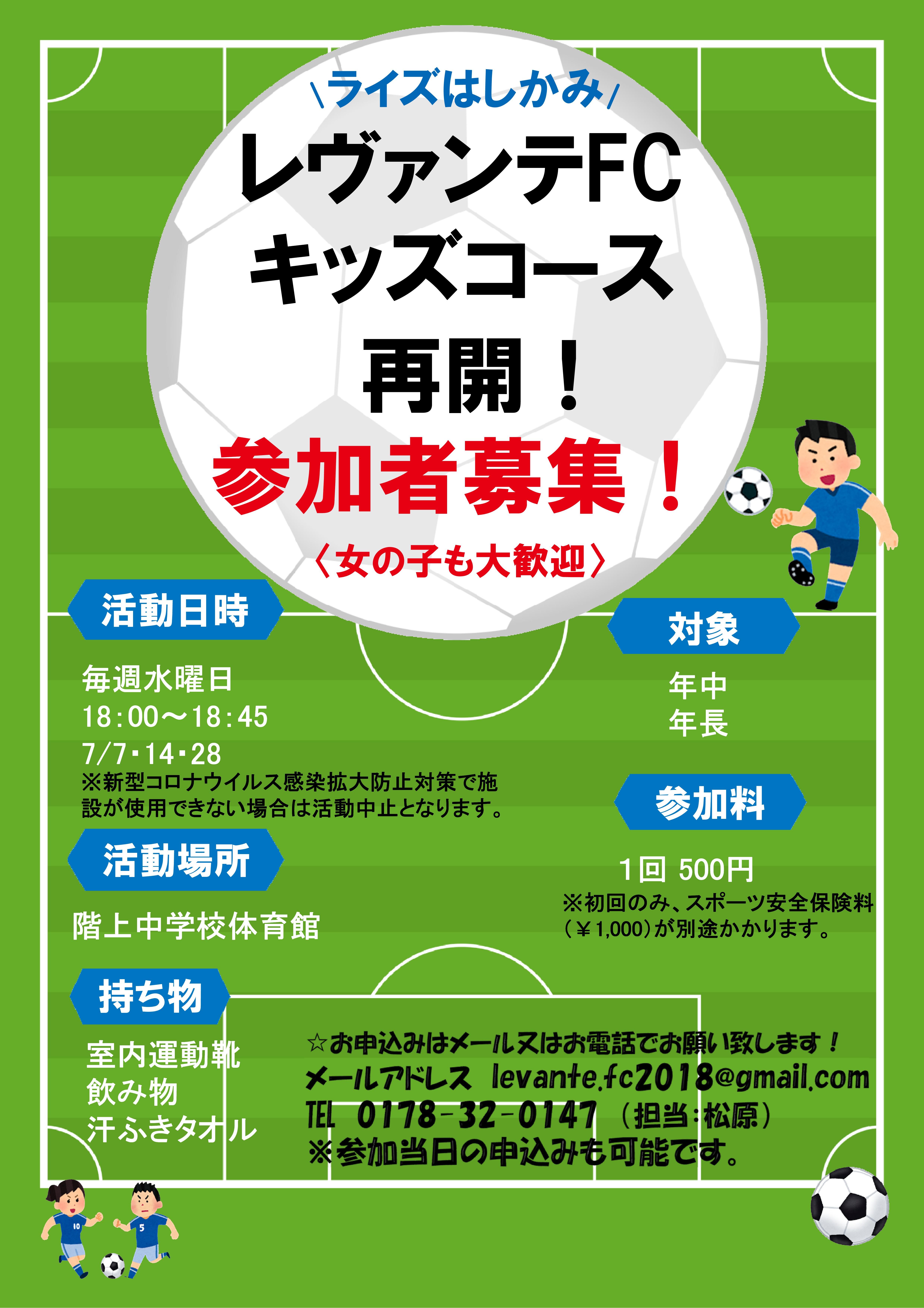 電話 0178-32-0147 メール levante.fc2018@gmail.com